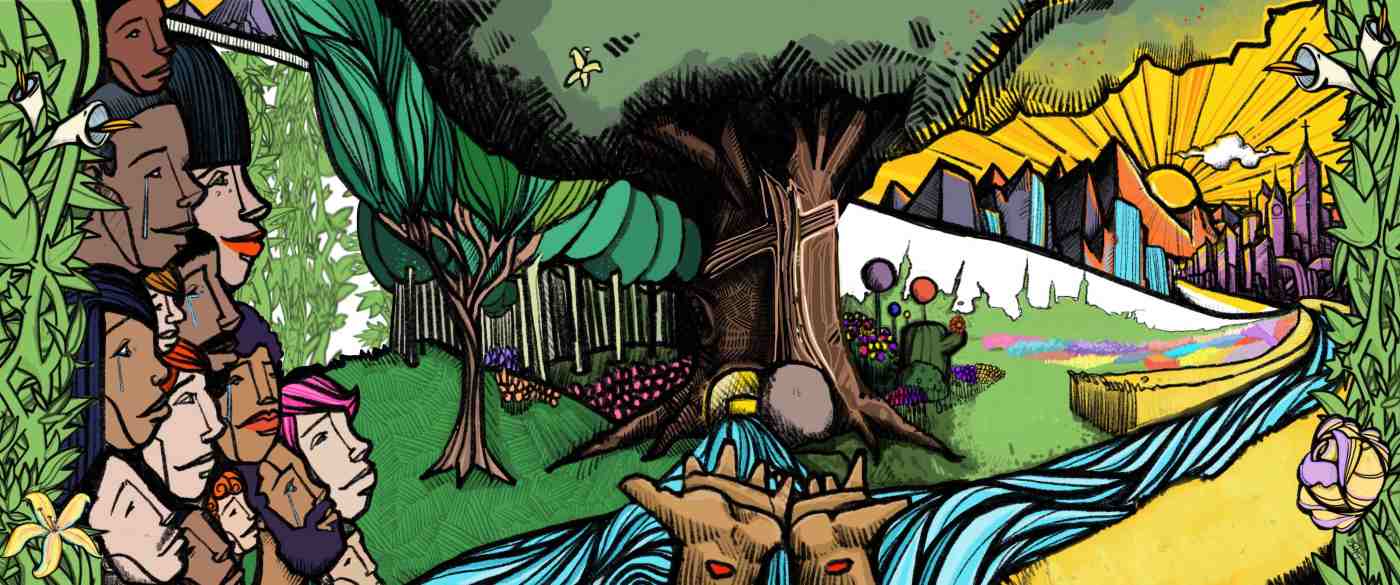 And so we as a worshipping community are invited to imagine: a church which is planted on the banks of the river of life. It doesn’t buy in cheap synthetic fertilizers of management theory or corporate models or the latest in pop psychology. Instead, it’s fed by the logos, the word, the eternal joyful conversation that is communion with the Lamb. Imagine: a church with deep roots in the gospel! It produces good fruit year-round, fruit which nourishes and sustains. Imagine a church so healthy, so actively engaged in feeding and loving and peace-making and bridge-building, that it is healing all peoples; even its leaves are balm.