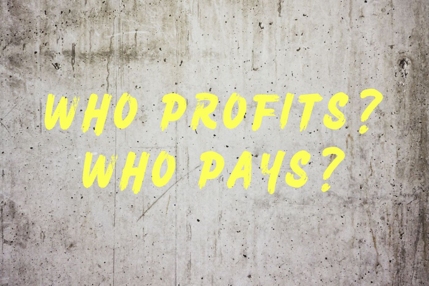 Who profits? Who pays? For many years, these words were daubed in bright yellow paint on a wall near my old house; I read them every time I walked past. Gradually they sunk in, until they became the fundamental questions I bring to everything. The news. A sermon. A theological position. A decision. And, of course, any reading of the Bible.