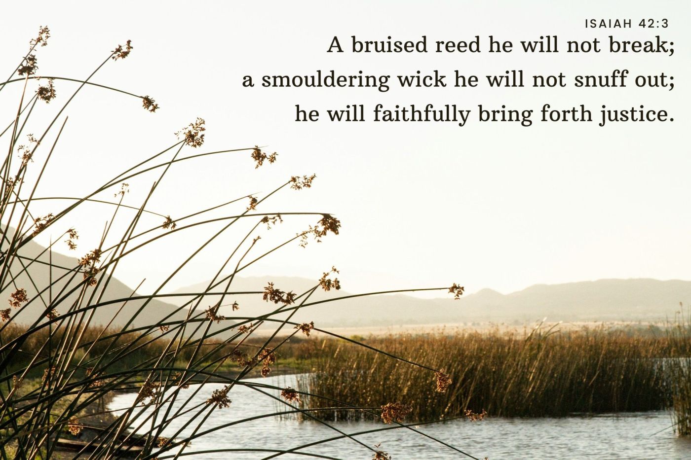 So this servant doesn’t raise his voice or make it heard in the streets. He’s not ranting into a microphone at a political rally or drawing attention to himself on social media. Instead, he is quietly going about his business, which is to bring forth justice.